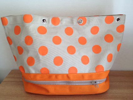 | メインカラー:ベージュ 底:ベージュ で作ったネオンカラー(オレンジ×イエロー)のプリントのMサイズトートです。 Plusにもbaobab tote coverにもできます。 |