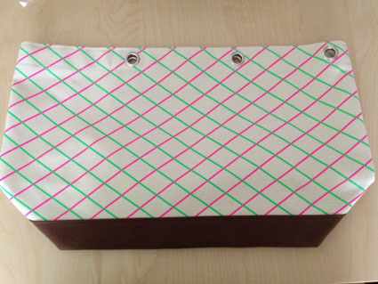| メインカラー:キナリ 底:ブラウン で作ったネオンカラー(ピンク×グリーン)のプリントのMサイズトートです。 Plusにもbaobab tote coverにもできます。 |